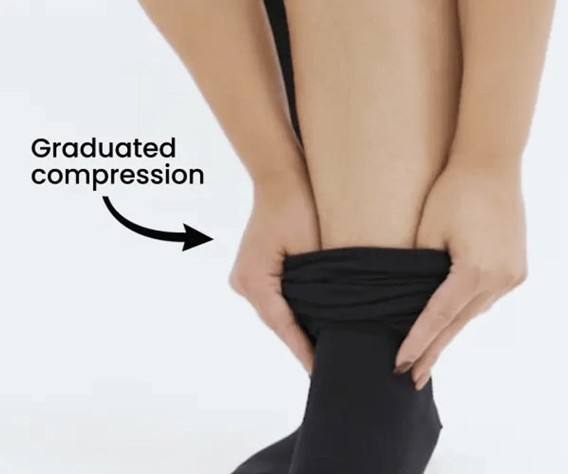 Ces chaussettes exercent une compression graduelle qui stimule le retour veineux.